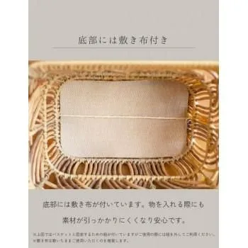 【注意事項】 ※天然素材風の素材を使用しているので1点1点色ムラがあったり木目が異なります。 ※天然素材風に編んで作っているため、多少のゆがみ等ある場合がございます。 ※生産の仕様上途中で素材の継ぎ足しによる色の切り替え等が発生します。ご了承の上、お買い求めいただけますようお願いいたします。 ※編みあがり箇所が鋭くなっている場合があります。ご注意下さい。 ※水洗いした後はタオル等でよく水気を切り、風通しの良い場所でしっかり乾かして下さい。アイアンを使用していため濡れたままだと錆びの原因となりますのでご注意ください。 ※過度な力を加えると変形破損の原因になりますのでおやめください。 ※撮影環境やお使いのモニター環境により色合いが異なって見える場合がございます。ご了承下さい。 サイズ幅26×奥行17.5×高さ16.5cm(総高22cm) 個装サイズ:28×24×19cm 重量個装重量:300g 素材・材質本体:ポリエチレン、ポリプロピレン、アイアン 敷き布:ポリエステル、綿、EVA 生産国中国 fk094igrjs おすすめ 商品番号:ab-1924630 ※代引き不可 同梱不可※北海道、沖縄、離島送料は別途お見積り。※手配完了後は、ご注文キャンセルを承る事が出来ません。何かございましたら事前にお問い合わせ下さい。