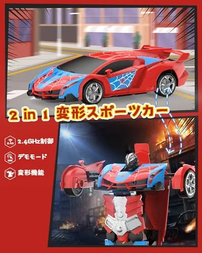 【迅速に発送】DEERC ラジコン ラジコンカー こども向け リモコンカー RCカー ロボット おもちゃ 車 変形 スタントカー スポーツカー 2 in 1 変形可能 デモモード 360°回転 2.4GHz USB充電 男の子 子供 小学生 中学生 誕生日 プ