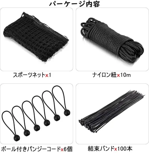 【簡単に設置可能】:各ネットは10mナイロン紐と100本結束バンド、6個ボール付きゴムバンドを付属しています。四隅と三辺を固定するだけで設置完了です。軽量、コンパクトで収納も簡単!
