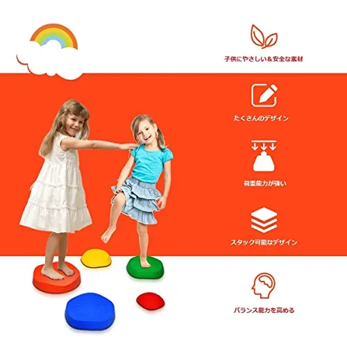 【迅速に発送】GYMAX バランスストーン 子供用 5個セット 耐荷重100kg 室内 遊具 バランス ストーン 平均台 バランスボード 室内 屋外 遊具