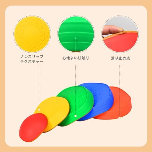 【安全性】この子供用バランスストーンは、耐久性があり健康に安全なPP材料で作られています。シリコンエッジのスリップ防止加工と表面のテクスチャリングにより、摩擦力を増強し、子供の安全性を確保します。