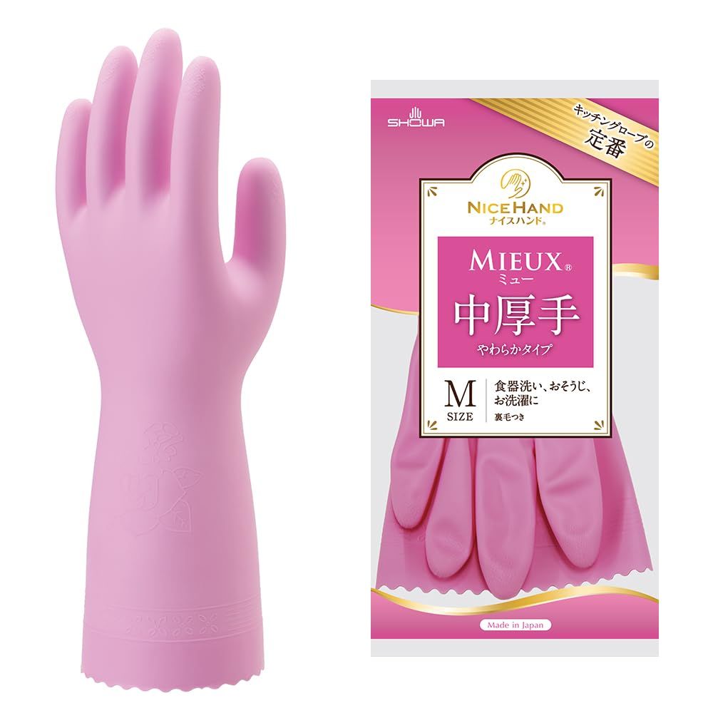 新品 【日本製・炊事手袋】 ショーワグローブ(Showaglove) ナイスハンド ミュー 中厚手 Mサイズ ピンク 1双