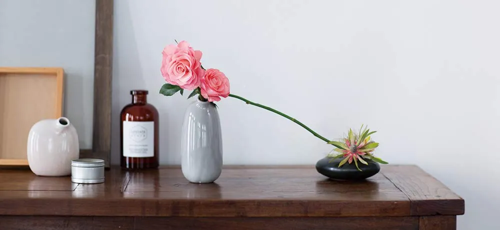 「植物の変化を身近に愉しみ、日々にくつろぎを」動きのあるふっくらとしたかたちが遊び心をくすぐり、様々な草花との組み合わせが愉しめる一輪挿しSACCO。傾いた口の向きによって植物の躍動感や繊細さがより際立ち、豊かな表情が生まれます。気軽にインテリアに取り入れられるコンパクトなサイズで、濃淡のあるカラーや趣ある質感が空間に心地よさを与えます。