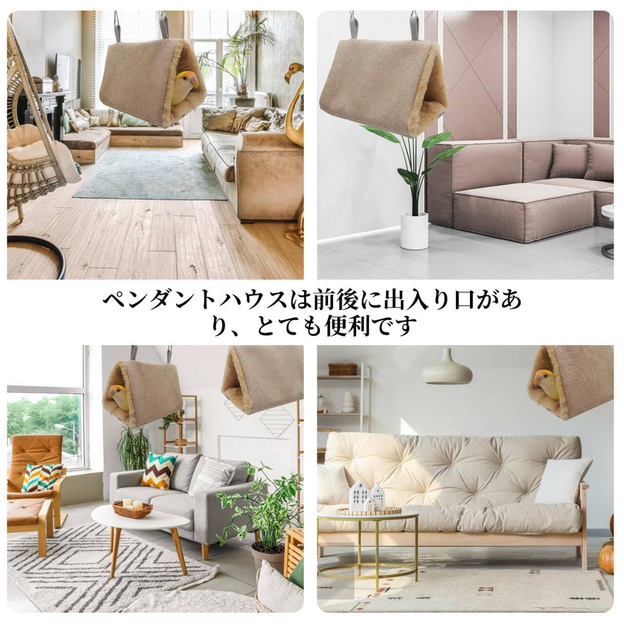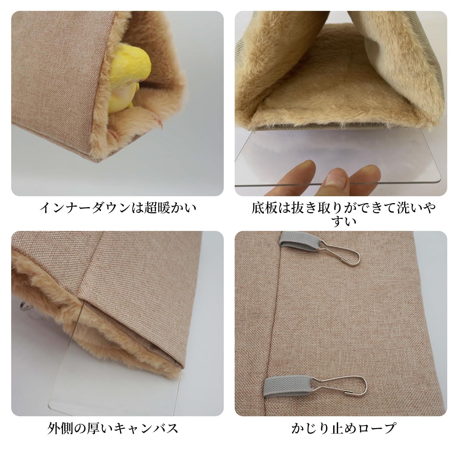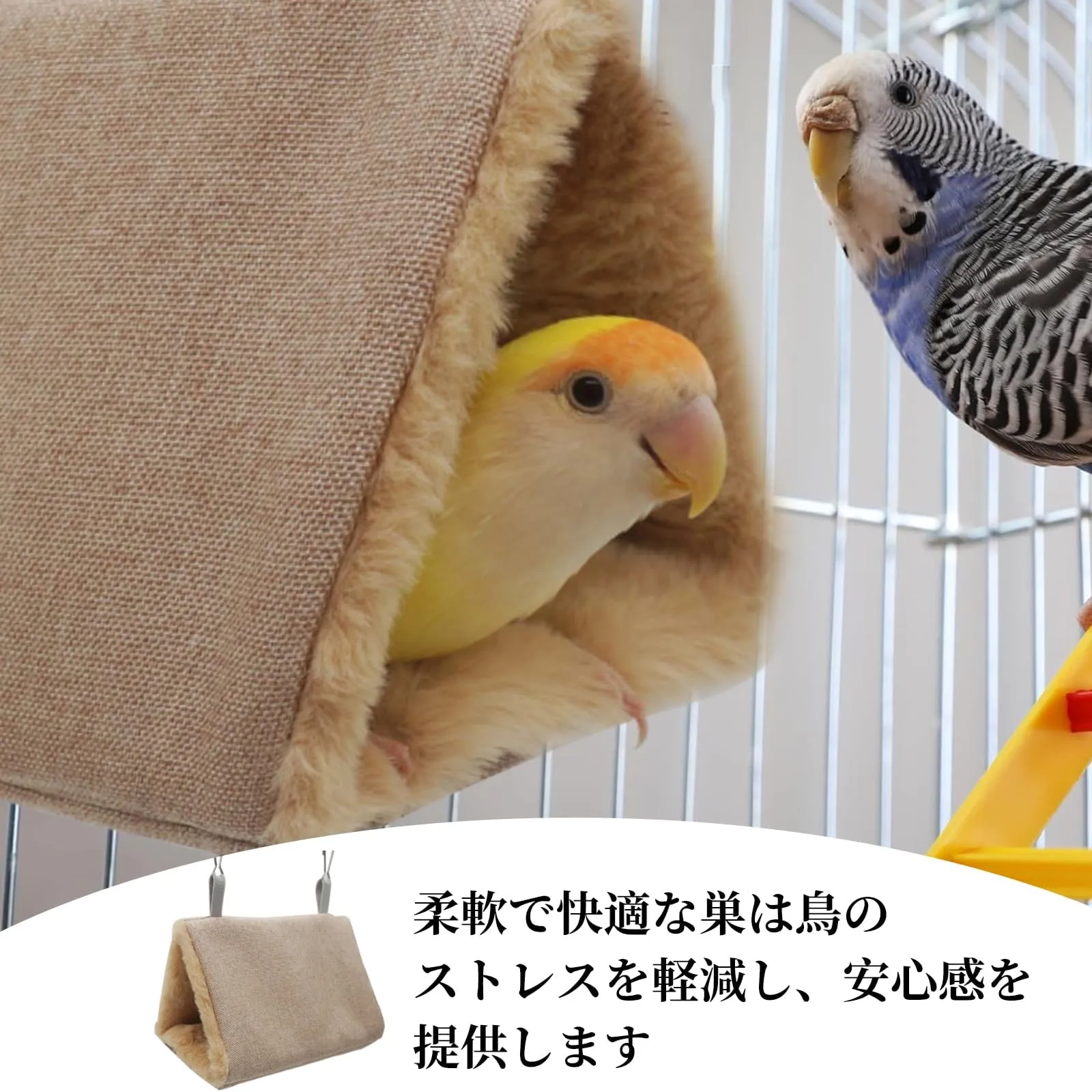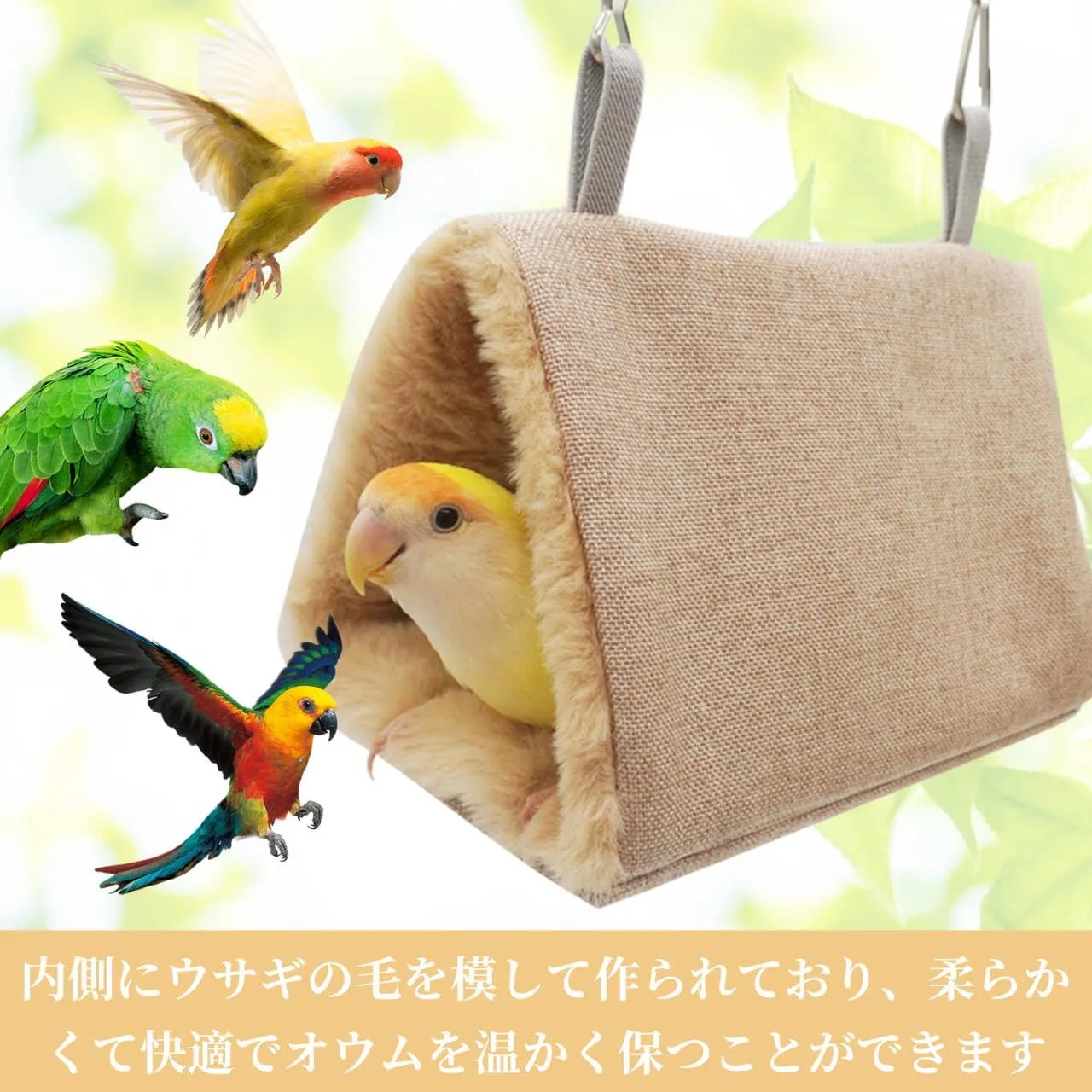 【2つの使い方】:鳥たちの寝床は、温かみのある柔らかい素材で作られており、ペットを快適に保ちます。お手入れも簡単で、小動物の爪が引っ掛かることもありません。