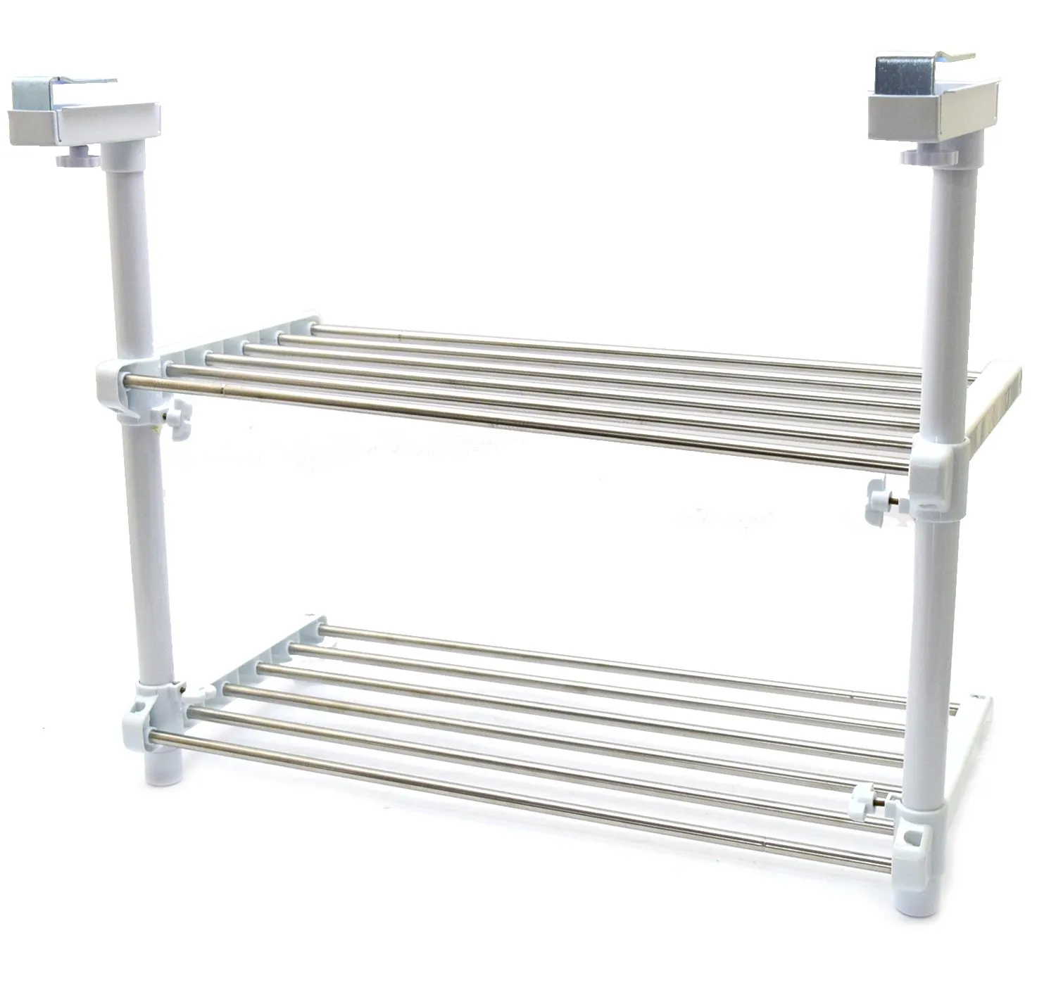 耐荷重6kg 錆びにくい キッチン収納 収納棚 キッチン置き棚 挟みこみ 穴あけ不要 つりさげ シルバー 幅調整可能 棚 2段 キッチンラック 伸縮吊り下げ ステンレス TAKAGI 高儀