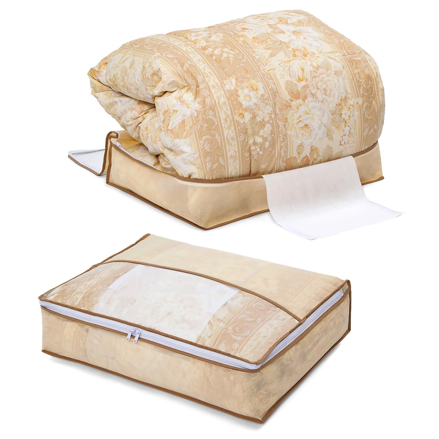 131-45 ベージュ 薄型 圧縮袋 収納ケース 布団袋 布団収納 透明窓付き 通気性の良い不織布がホコリなどの汚れをガード 押さえベルトでとめるだけでコンパクト収納 軽圧縮 シングル 2枚組 羽毛布団収納袋 アストロ