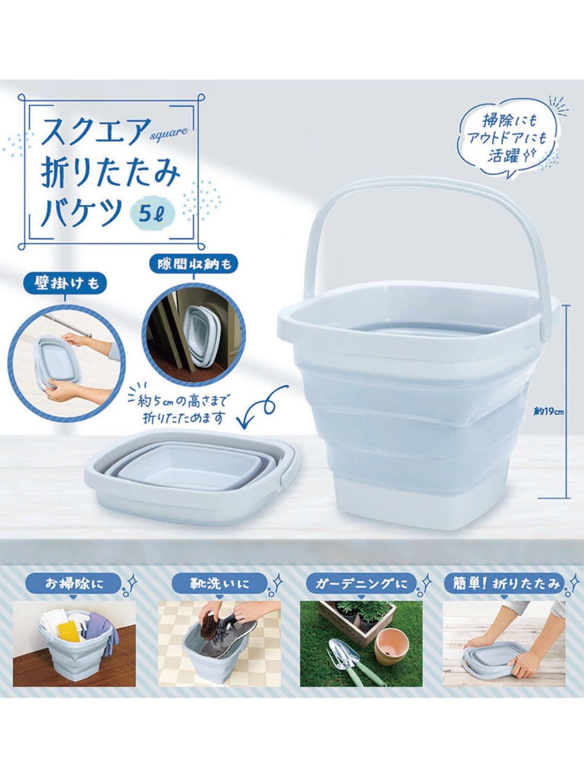 ●靴洗い、ガーデニング、掃除道具入れに。壁掛けもOK! 本体サイズ:使用時/約縦25.7cm×横23.8cm×高さ19.5cm(取手含まず)、収納時/約縦25.7cm×横23.8cm×高さ5.2cm(取手含まず)(実容量/5L) 本体重量:360g 素材:ポリプロピレン、エラストマー 色:グレー 生産国:中国 最後までご確認頂き誠にありがとうございました。 上記をご確認頂き、ご購入いただけましたら幸いです。 何かご不明な点がございましたらお気軽にメッセージからお問い合わせ下さい。 配送について、土日祝は配送業務がお休みとなります。 ご了承ください。 宜しくお願い致します。