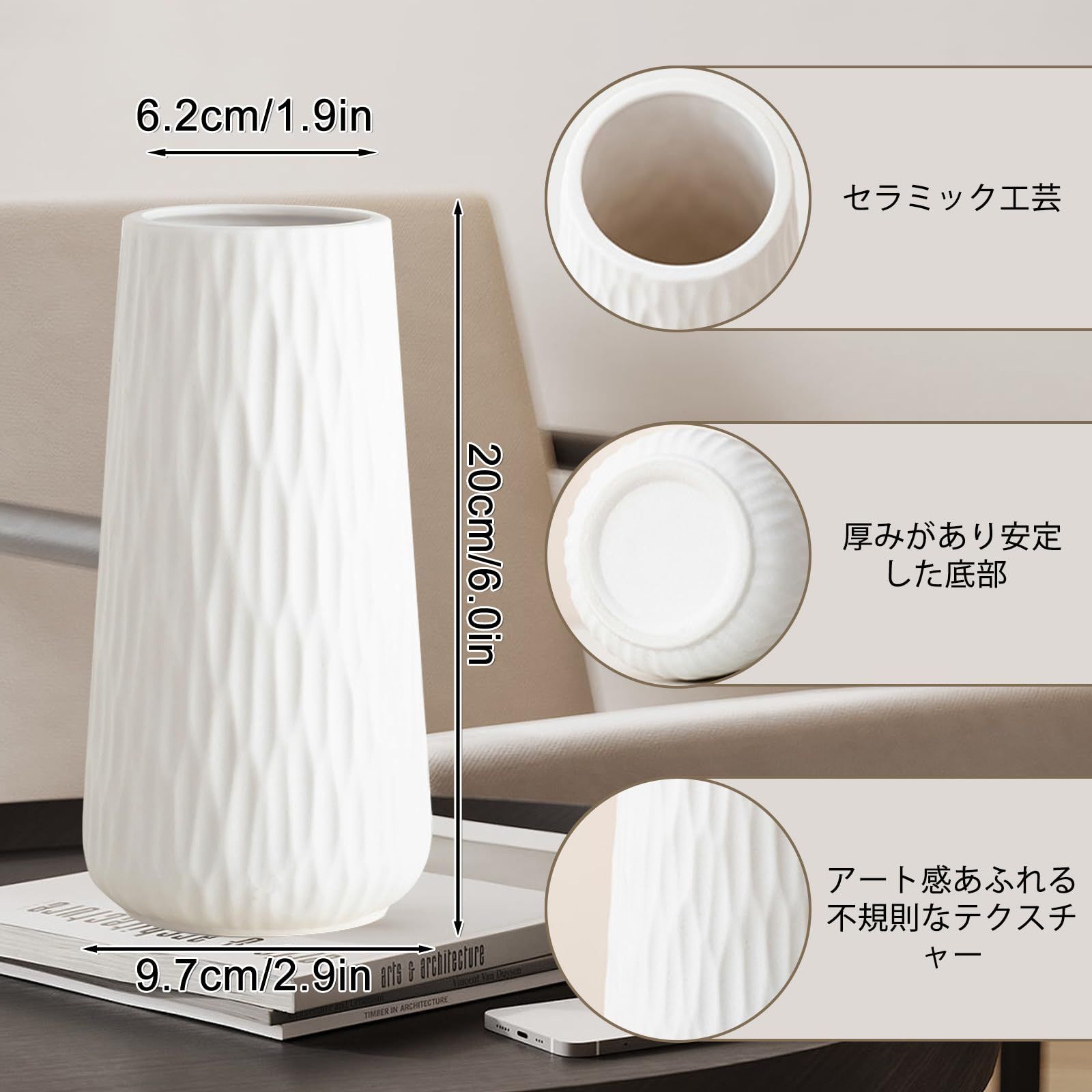 【商品情報】材質:セラミック。サイズ:花瓶口幅 6.2cm、花瓶高さ 20cm、花瓶底幅 9.7cm。(この商品には花は含まれていません。花瓶のみが含まれています。)