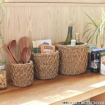 水草とジュートで編んだ天然素材のバスケット。大中小の3個セットで使い方いろいろ!何を入れるか考えるのも楽しい。