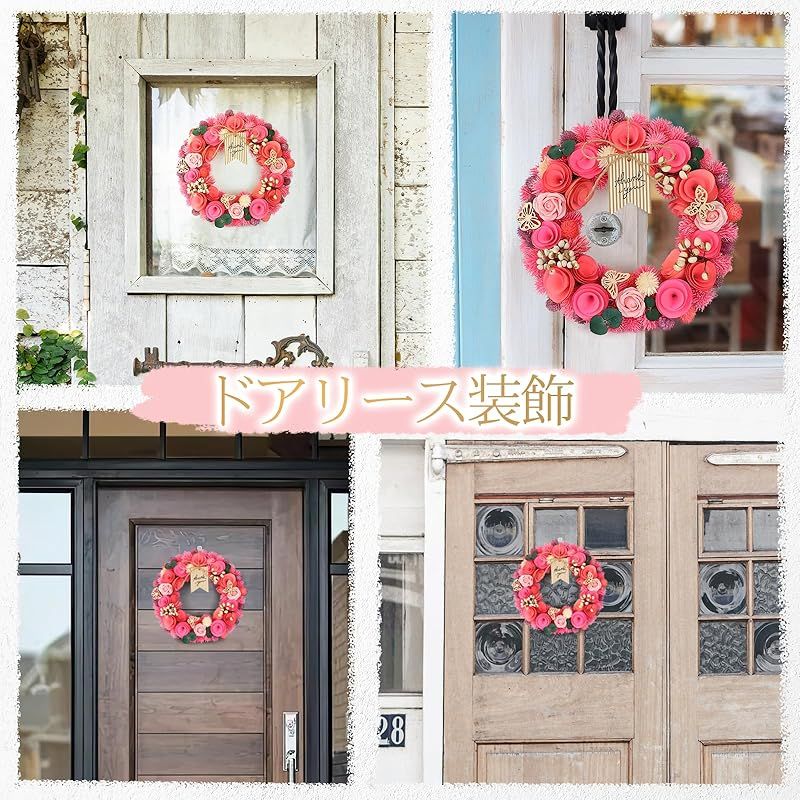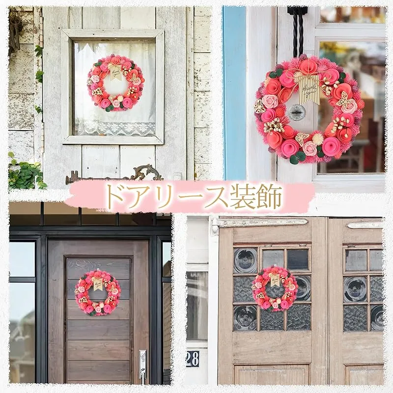 【商品説明】 ??装飾リース:花屋の手作りで、スライスした木を花のように配置しています。鮮やかなピンクを基調に、さまざまな色のイチゴ、バラのソープフラワー、かわいい蝶をあしらっています。ユニークな組み合わせで、その魅力に抵抗できません。リースには紐とスタンドが付属しているので、お好きな場所に置いてお楽しみいただけます。玄関ドアに掛けておけば、帰宅時に遠くからでも美しく飾られたドアが見えて、幸せな気分になります。