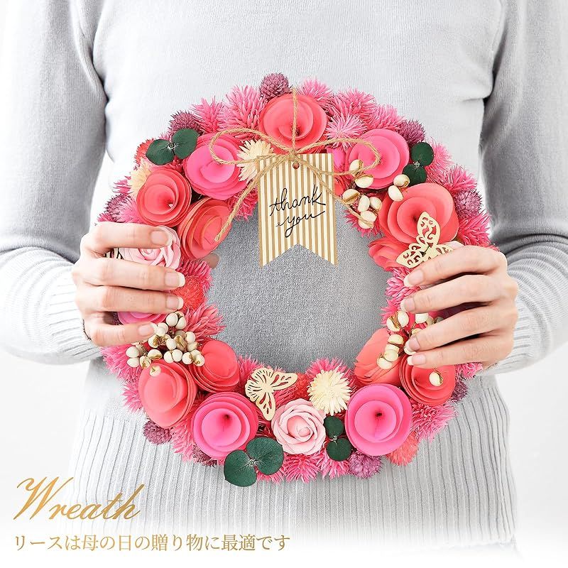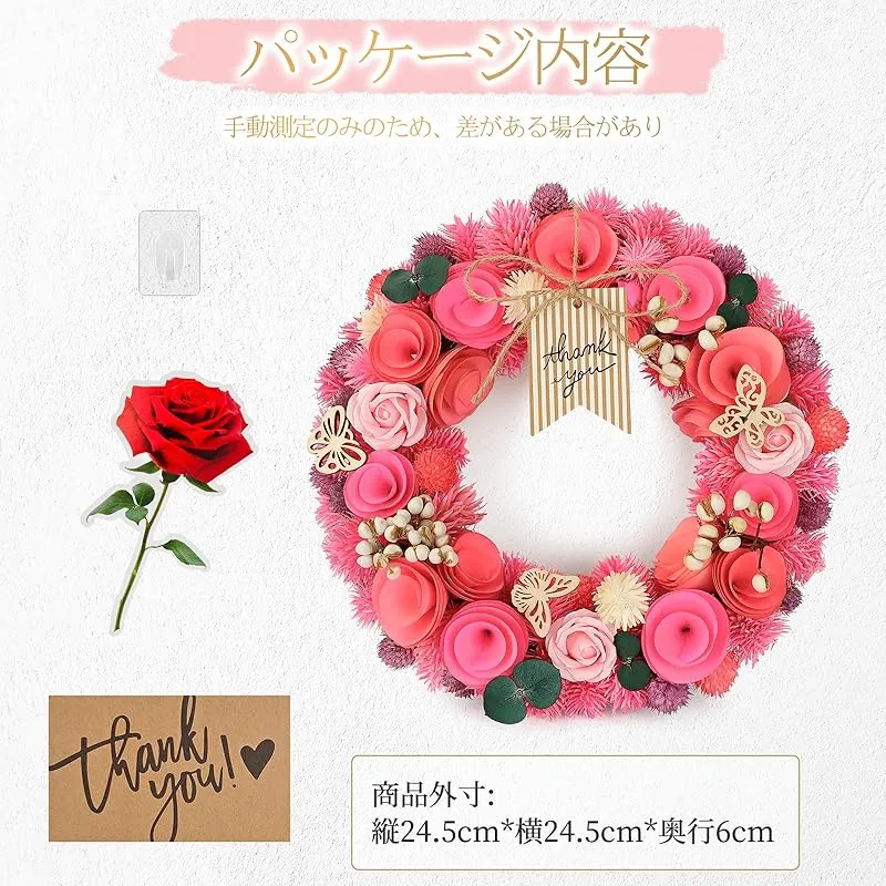 【新品】 [2025年 SENJWARM ]母の日ギフト フラワーギフト 春リース お花 プレゼント 玄関用 ピンク色 レッド色 永遠の意味 25cm(直径)×7cm(厚み)玄関飾り 母の日リース 自宅用 0