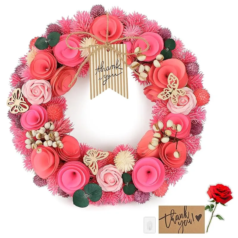 【新品】 [2025年 SENJWARM ]母の日ギフト フラワーギフト 春リース お花 プレゼント 玄関用 ピンク色 レッド色 永遠の意味 25cm(直径)×7cm(厚み)玄関飾り 母の日リース 自宅用 製造元:SENJWARM 商品番号:SJ-Wreath-01 商品内容:ピンクのバラ 色:01