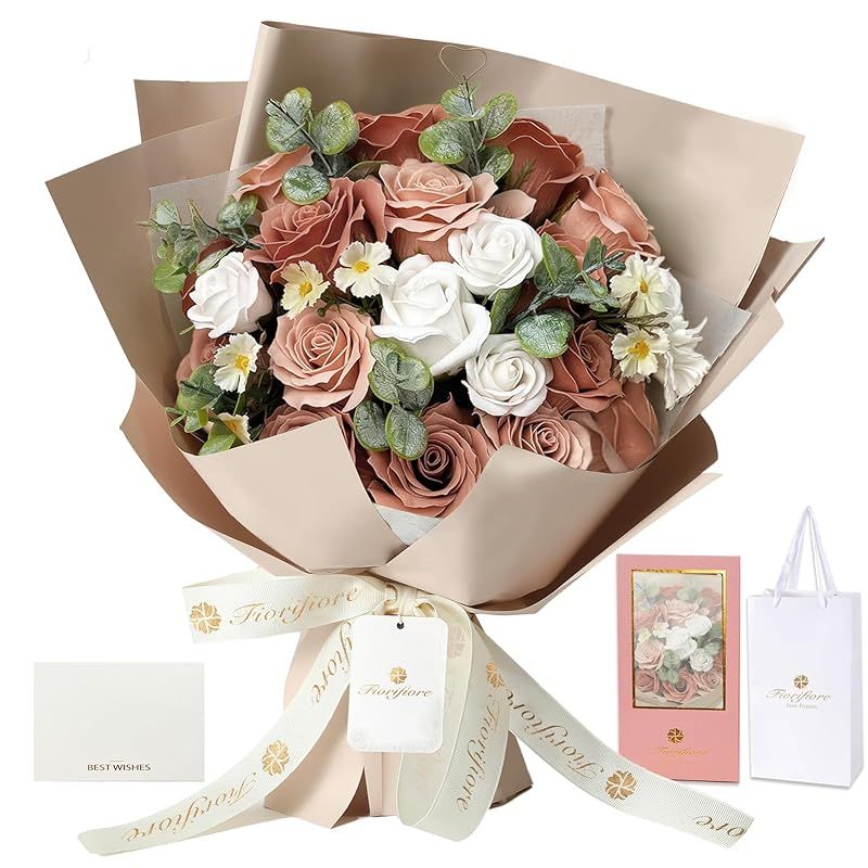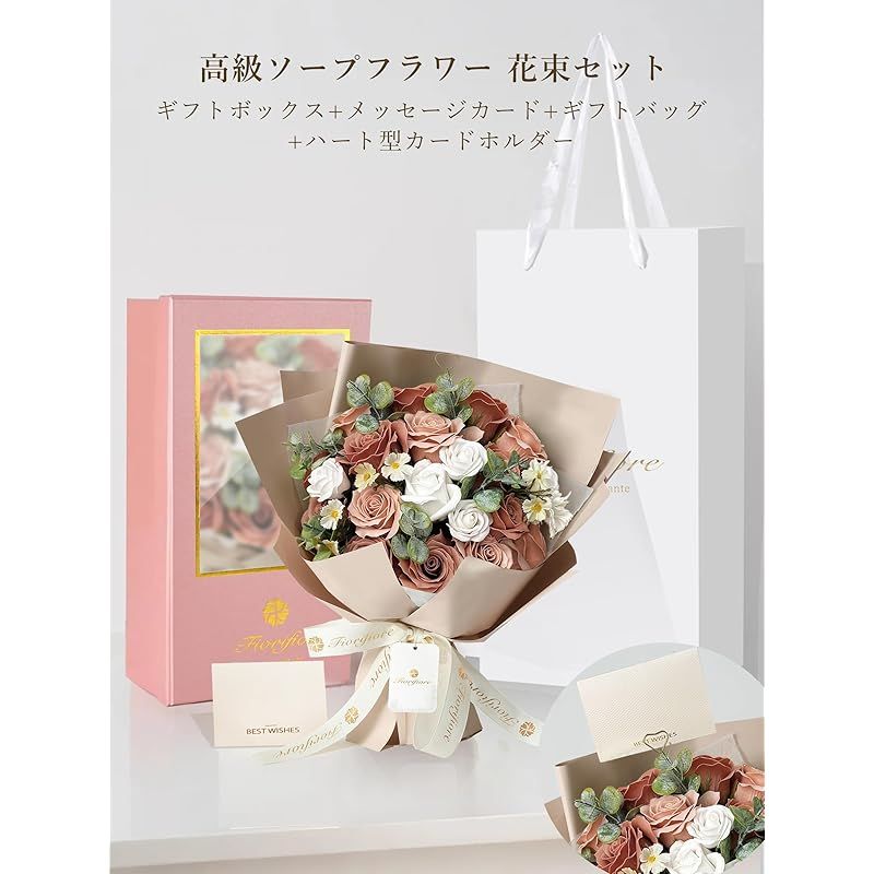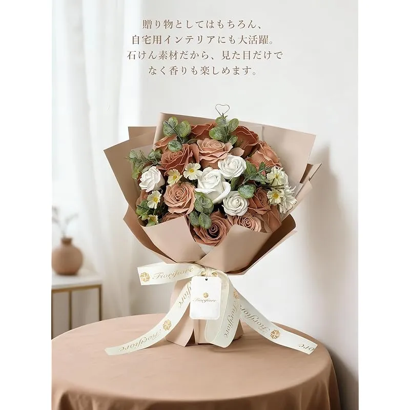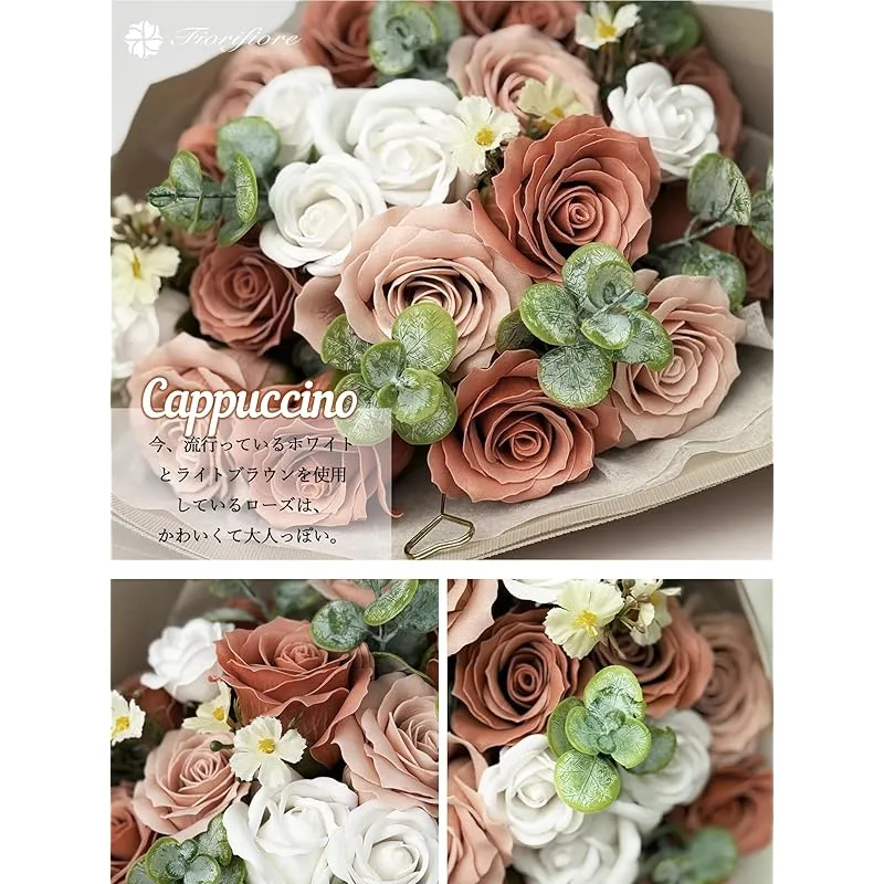 【新品】 Fiorifiore 人気 母の日 ソープフラワー 卒業式 花束 プレゼント ギフト 誕生日 造花 バラ 18本 女性 結婚祝い 退職 送別会 インテリア (Cappuccino) 1