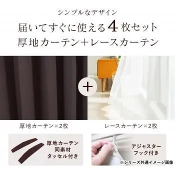 ■ラッピング(包装)対応不可です。 白のレースカーテンと無地の厚地カーテンは主張が少ないので、どの空間にも馴染みやすく飽きのこないお部屋作りをしたい方におすすめです。 ※フックはカーテンにあらかじめ取り付けられています。 アジャスターフックは5mm単位で調整可能です。 サイズ幅100×190cm 個装サイズ:25×45×18cm 重量個装重量:2300g 素材・材質厚地:ポリエステル100% 裏地:ポリエステル100% 仕様水洗いOK 特徴:1級遮光、遮熱、形状記憶、ウォッシャブル セット内容厚地カーテン2枚、レース2枚、カーテンを束ねるタッセル2点 生産国中国 fk094igrjs おすすめ 商品番号:ab-1932795 ※代引き不可 同梱不可※北海道、沖縄、離島送料は別途お見積り。※手配完了後は、ご注文キャンセルを承る事が出来ません。何かございましたら事前にお問い合わせ下さい。