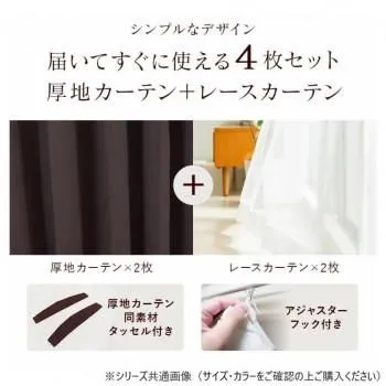 ■ラッピング(包装)対応不可です。 届いてすぐに使える厚地カーテンとレースカーテンのセットです。1級遮光なので家具やフローリングを日焼けから守り、プライバシーの確保や快適な睡眠をサポートします。 ※フックはカーテンにあらかじめ取り付けられています。アジャスターフックは5mm単位で調整可能です。 サイズ幅100×丈(厚地カーテン)220×丈(レースカーテン)218cm 個装サイズ:25×55×18cm 重量個装重量:2600g 素材・材質カーテン:ポリエステル100% 仕様機能:1級遮光/遮熱/形状記憶/ウォッシャブル セット内容厚地カーテン2枚・レースカーテン2枚・カーテンを束ねるタッセル2点 生産国中国 fk094igrjs おすすめ 商品番号:ab-1932810 ※代引き不可 同梱不可※北海道、沖縄、離島送料は別途お見積り。※手配完了後は、ご注文キャンセルを承る事が出来ません。何かございましたら事前にお問い合わせ下さい。