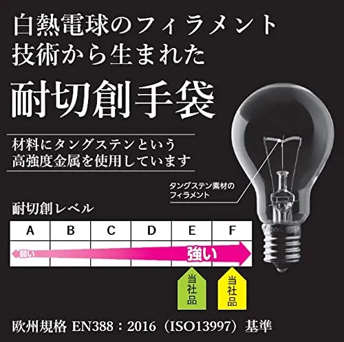 白熱電球のフィラメント技術から生まれた耐切創手袋