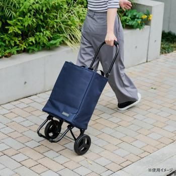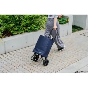 お店のショッピングカートに掛けられるので、お買い物中のカートの置場を心配する必要がありません。フックの角度は調整可能です。従来品よりも固定部分の幅を広げて安定感をアップさせました。また、タイヤの大型で安定感ある静かな機能はそのままに、デザインをスタイリッシュに変更しました。バッグの内側は全面アルミ蒸着シート張りになっており、便利な保冷保温機能付きです。本体フレームは折り畳み可能です。