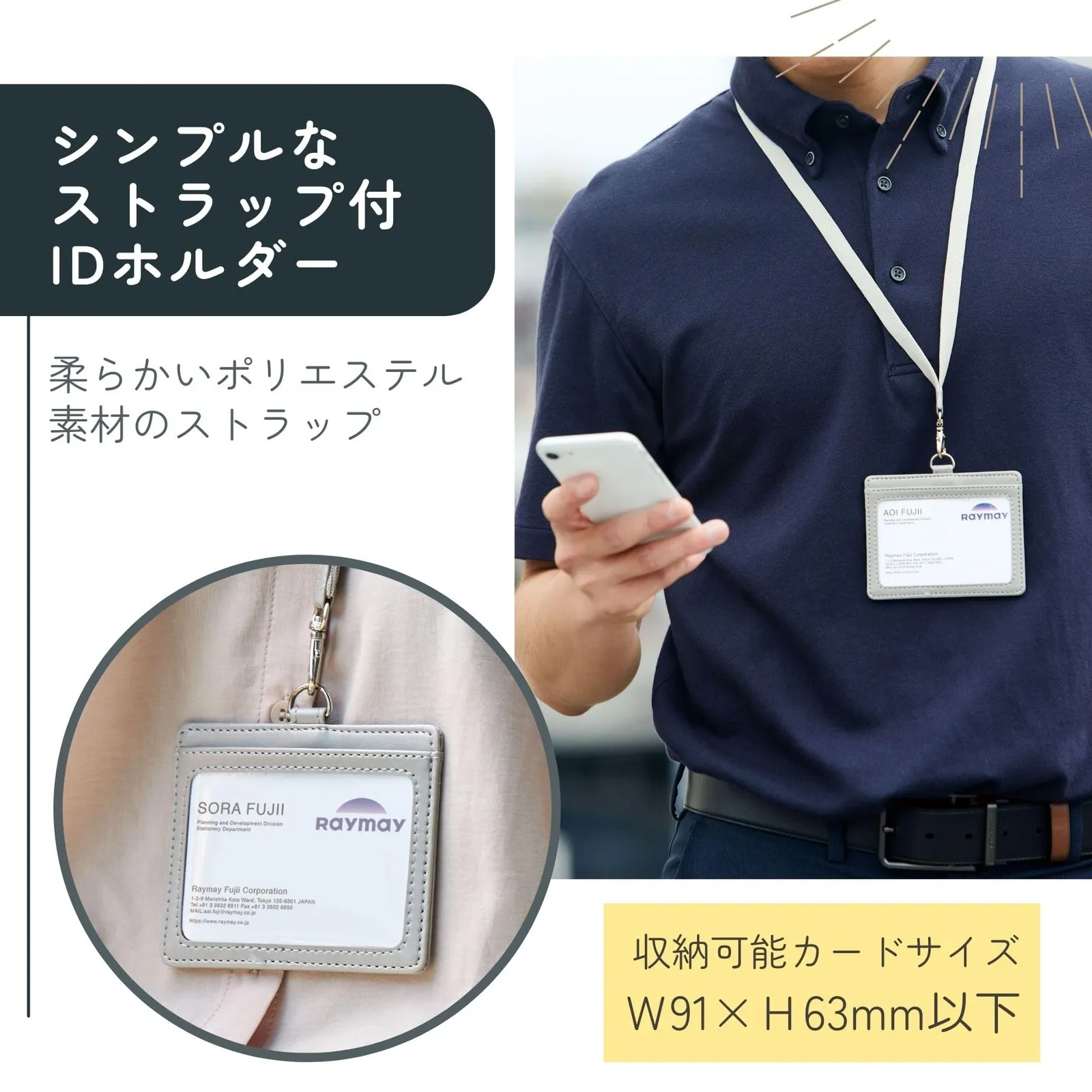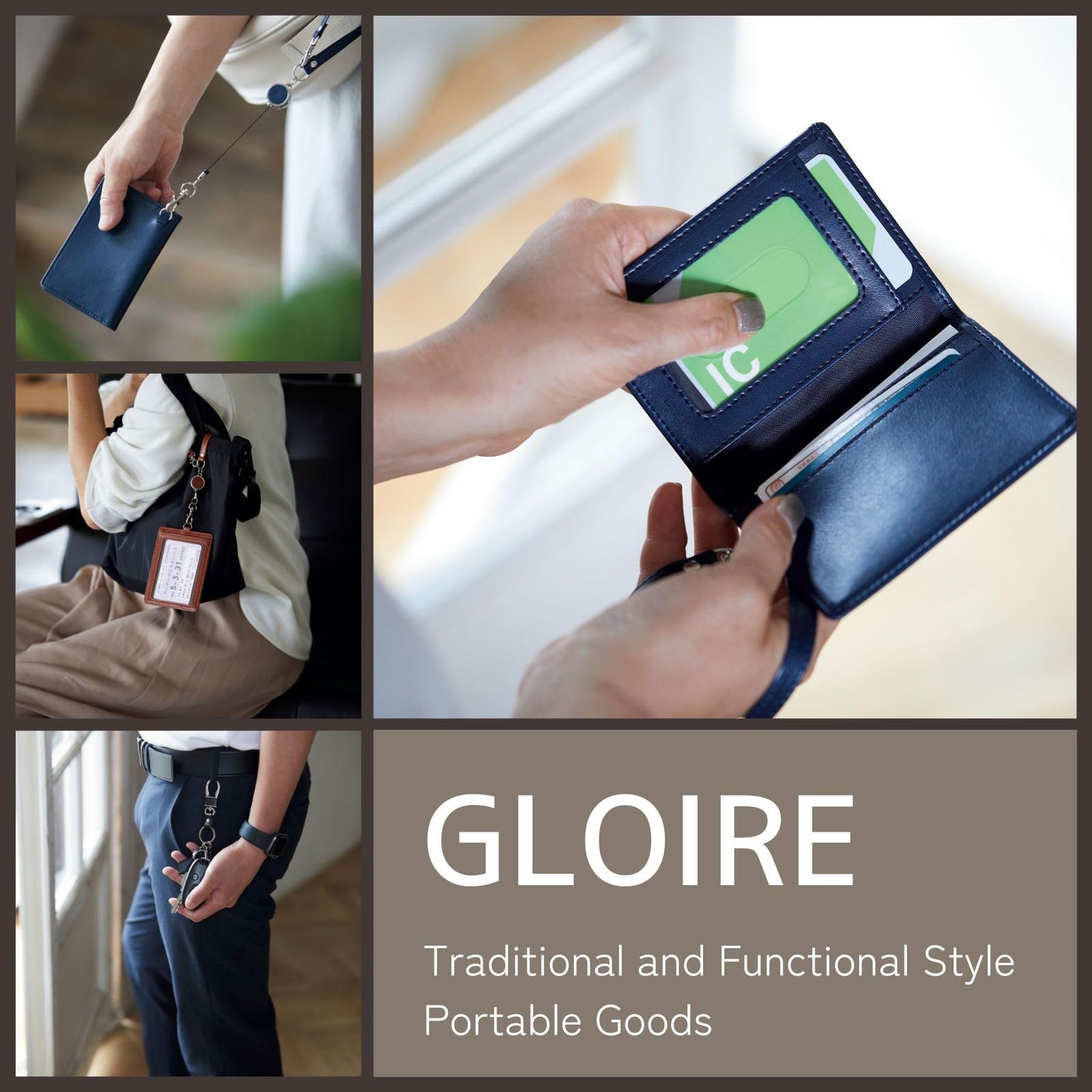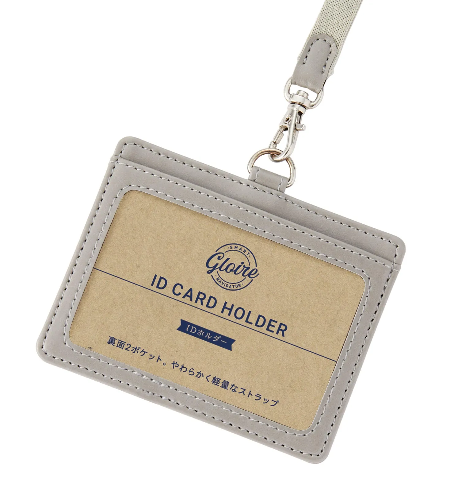 【柔らかく軽量なストラップが特長のIDホルダー】 ポリエステル素材の軽くて柔らかいストラップが付いたIDホルダーです。 裏面にはカードポケットが2つ付いているので、名刺やカードの収納に便利です。 収納可能カードサイズ:W91×H63mm以下 グロワールはオーソドックスなデザインと機能性にこだわり、長い歴史の中でビジネスマンのためのアイテムとして選ばれてきました。 その造りは、カーブの部分に生地を寄せて縫い上げる「菊寄せ」など細部にまでこだわった職人技による仕上がりとなっています。 柔らかく軽量なストラップ付IDホルダー 本体裏面に便利なカードポケット2つ付き