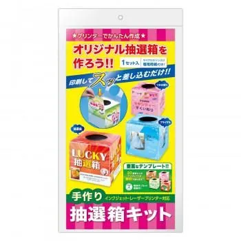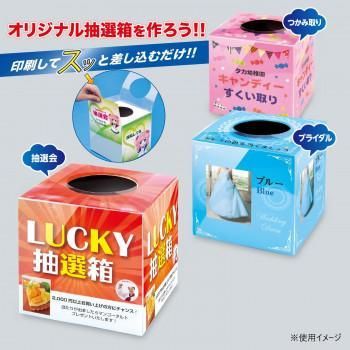 オリジナル抽選箱を作ろう。印刷してスッと差し込むだけ、専用用紙付き。マイクロミシン入り。