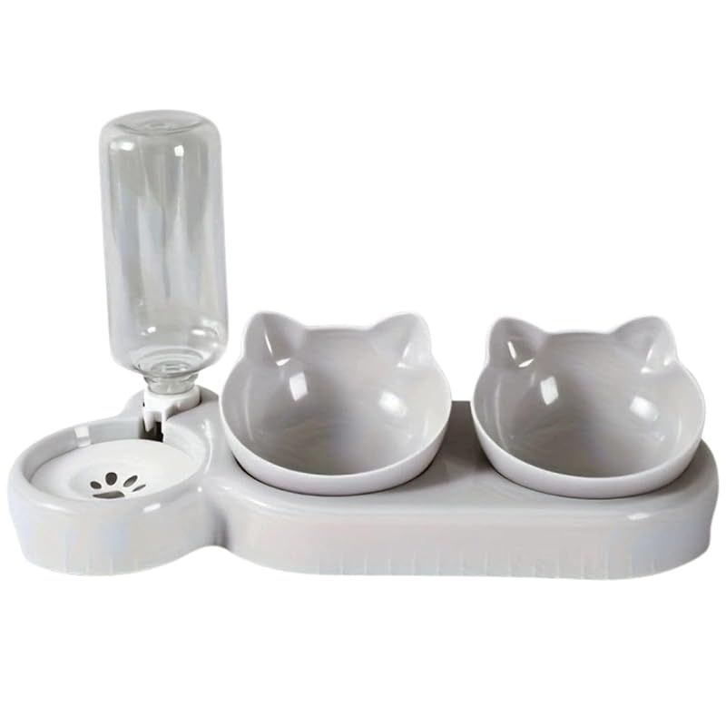 【新品】 フードボウル 給水ボトル セット 猫 ペット 小型犬 用 自動 給餌器 給水器 健康維持 グッズ (グレー (ボウル2個)) 1