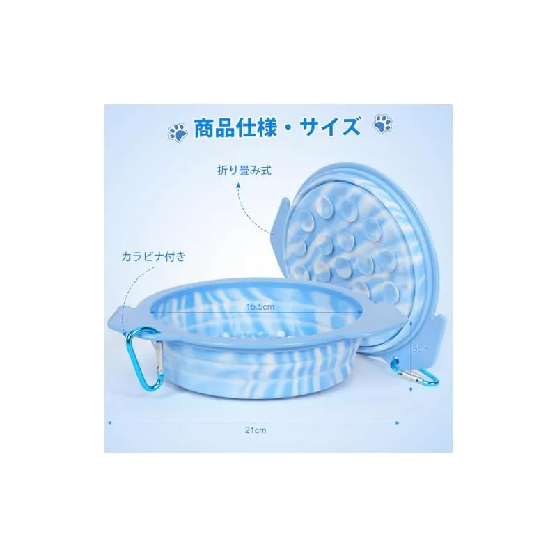 【カラビナ・シリコンヘラ付き】愛犬のリードやお散歩バッグにぶら下げて、歩きながら水切りできるフック付きです。折りたたんで収納できるため、お散歩時はもちろん、災害・非常時の防災グッズとしても使用できますよ。2個セットで水用とフード用を分けたり、愛犬・愛猫ごとに分けて使うこともできます。