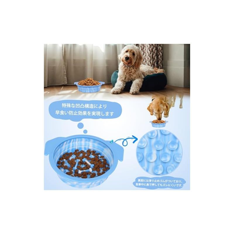【凹凸構造により早食い防止】食器に特殊な凹凸があることにより、食事の速度を効果的に減らし、ペットがゆっくりとしたペースで食事します.がつがつ食べることによる消・化・不・良、膨・満・感を予防します