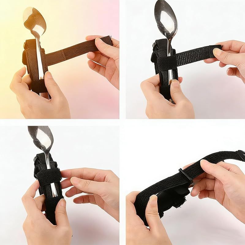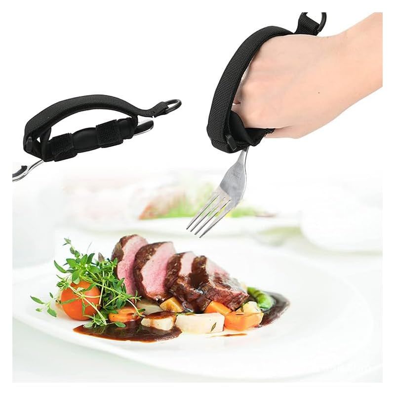 【新品】 高齢者 食事補助具 食事補助ツール 食事用フォーク/スプーンホルダー 滑り止め 調節可能 多機能 ハンド器具ホルダー お年寄り 身体障害者 食具 自助具 軽量 丈夫 耐久性 携帯便利 自助サポート 老人介護用品 ブラック 0
