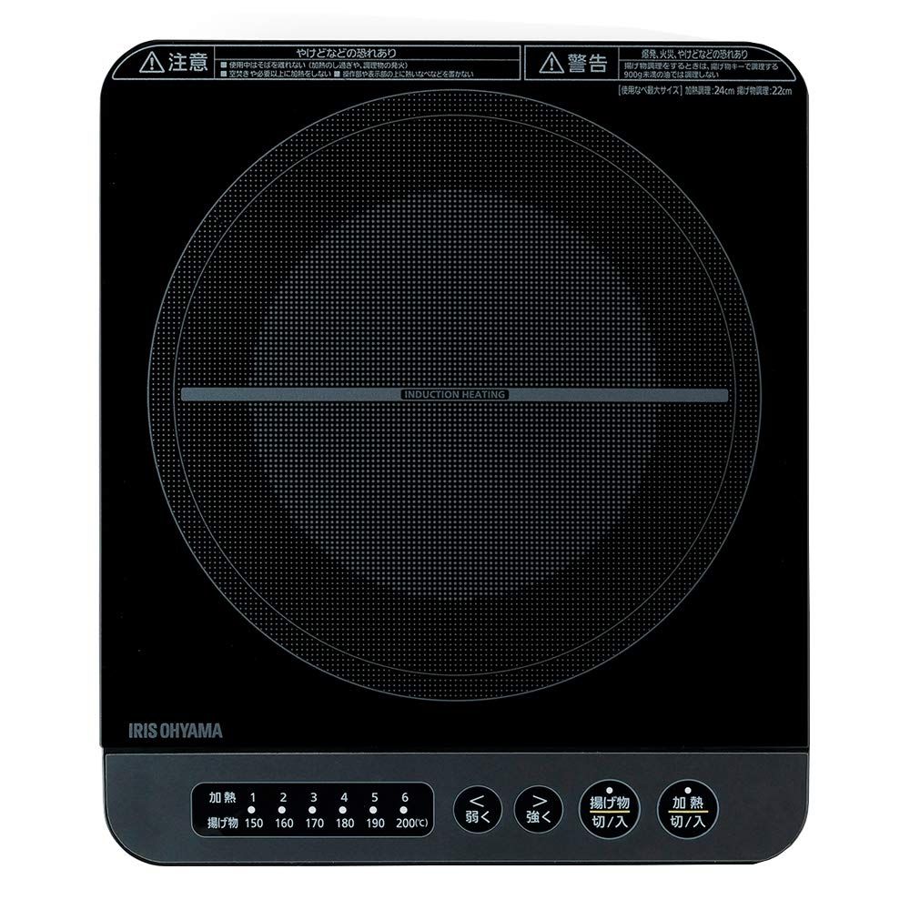 アイリスオーヤマ クッキングヒーター IHコンロ 1400W 卓上 小型 6段階火力調整 揚げ物 デザイン 簡単お手入れ 1口 IHクッキングヒーター 一人暮らし 二人暮らし 買い足し 家庭用 IHK-T37-B ブラック