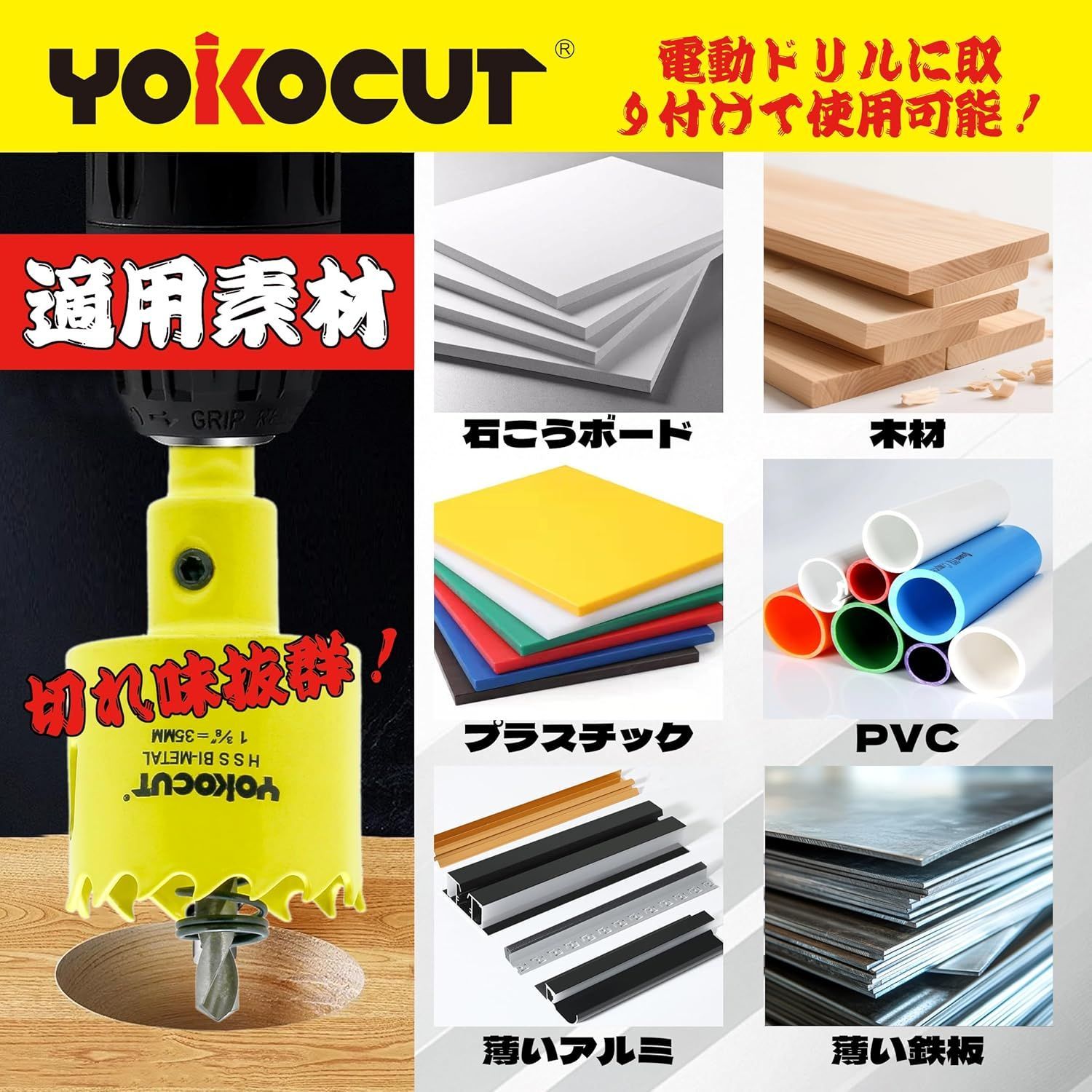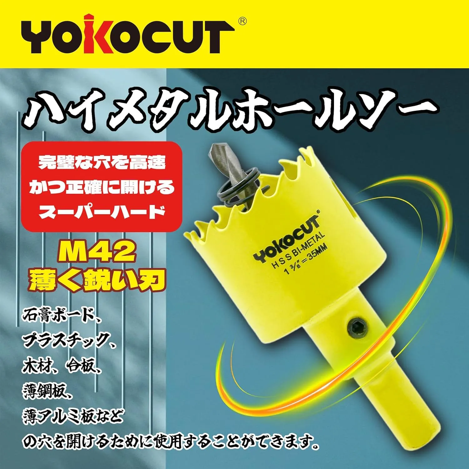 ホールソー 35mm バイメタル 穴あけ ドリルビット 切削工具 鉄 アルミ 石膏ボード プラスチック 木材などに (35mm)