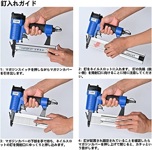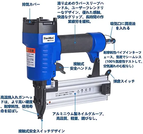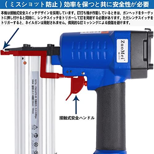 エアータッカー エアー釘打ち機 フィニッシュネイラー 1000枚釘付き 誤射防止 常圧 軽量 木工ツール 大工工具 日本語取扱説明書付き