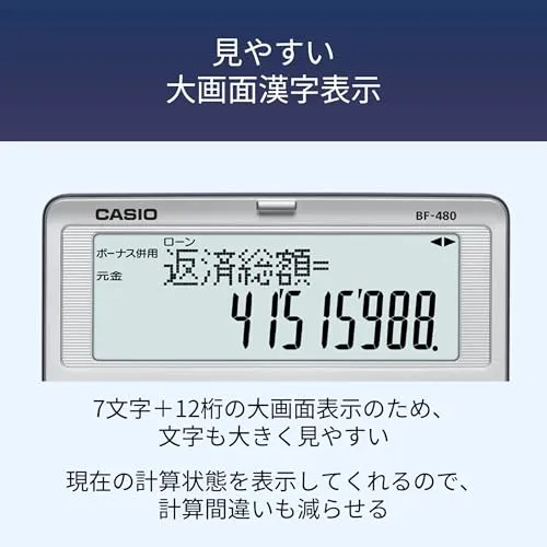 カシオ 金融電卓 折りたたみ手帳タイプ BF-480-N