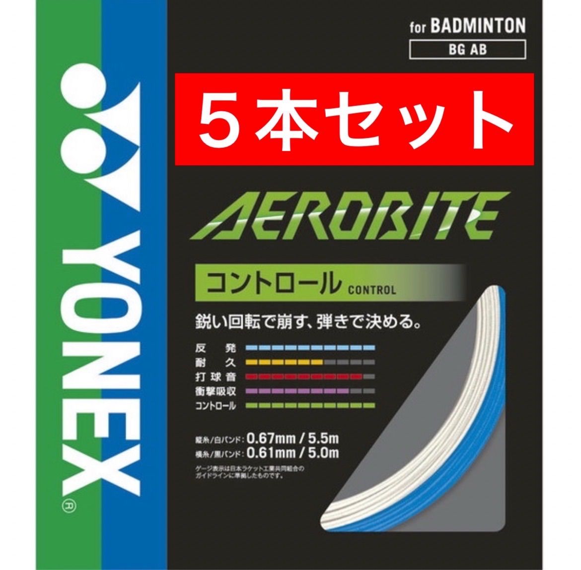 YONEX バドミントン ストリング BGAB エアロバイト ホワイト:ブルー 207 縦5.5m + 横5m × 5本セット