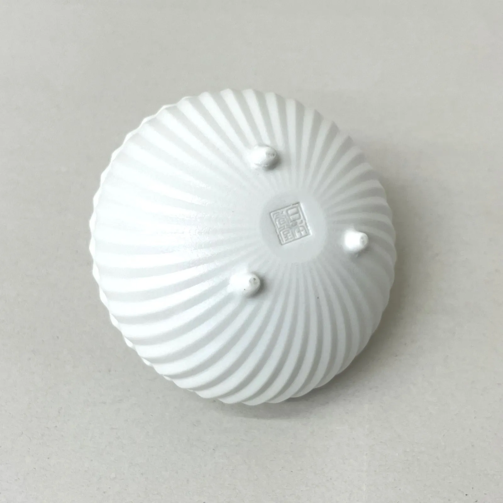 有田焼の技術によって生み出された本品は気品ある清楚なたたずまいで、表面のゆるやかな形状は空間に広がる香りの流れを表現しています。