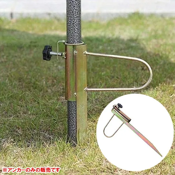 【商品詳細】 ビーチパラソル アンカー ビーチパラソルやポールを立てたい場所(砂や土)に設置するだけでパラソルを倒れにくくします。高品質の鉄を使用しているので、丈夫で耐久性があり、しっかりとしたホールド感をサポートします。設置する砂や土はある程度突き刺せる深さがないと設置できないので気をつけてください。対応する支柱の太さは2.8~3.2cmまでとなっています。