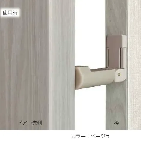 ●ドア戸先側の枠に取付けます。風等の外力で勢いよくドアが閉まろうとしても、ドアと枠の間に隙間ができるので、指をはさむ危険を抑止できます。