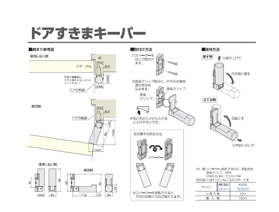 ●スペーサーを反転させて取付けることで、左右勝手に対応します。