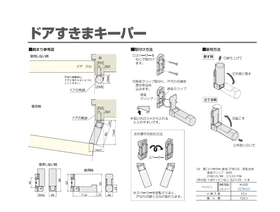 ●ドア戸先側の枠に取付けます。風等の外力で勢いよくドアが閉まろうとしても、ドアと枠の間に隙間ができるので、指をはさむ危険を抑止できます。」 ※離島・沖縄・北海道・個人様へは別途送料かかります予めご了承ください。 (送料お見積もりとなります)