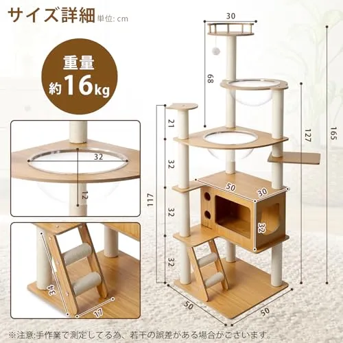 【環境に優しい素材とお手入れ簡単】このキャットタワーは、高温処理された木材を使用しており、優れた耐湿性と耐圧性を誇り、長期間使用しても形が崩れることはありません。宇宙船部分は水洗いが可能で、お手入れが簡単で、清潔に保つことができます。木の表面は湿った布で拭くだけでOK。お手入れが楽で、猫の健康を守りながら安心して使用できます。