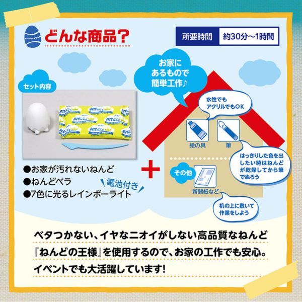 【セット内容】 ・ATねんどミニパック×1 ・ほんわかライト(ボタン電池3個付)×1 ・ねんどベラ×1