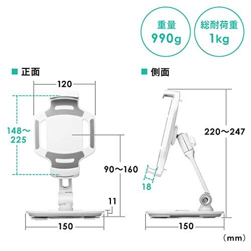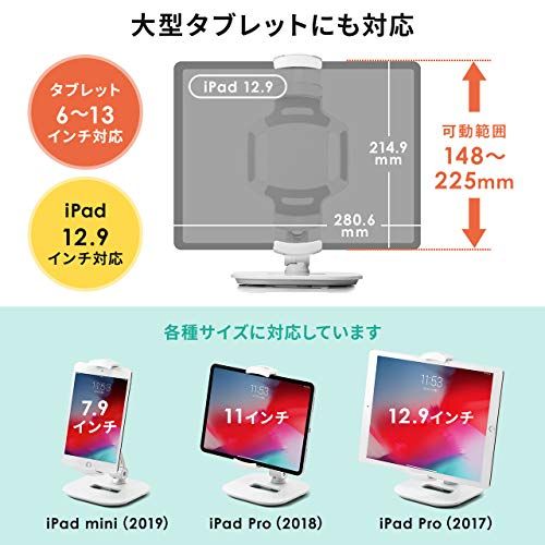 サンワダイレクト iPad タブレット アームスタンド 6?13インチ対応 角度調整 回転 ホワイト 100-LATAB013W