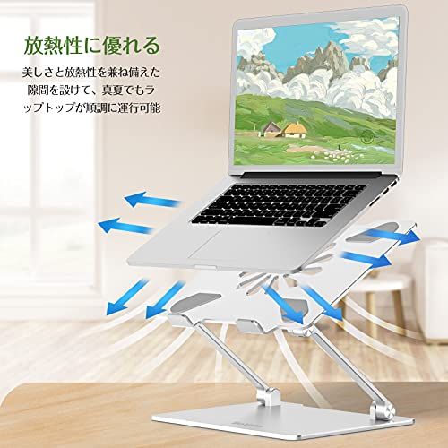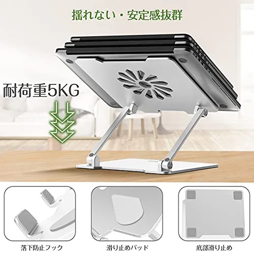 【滑り止めパッド・安定性抜群】パソコンスタンドの爪の内側・表面・底部共に10個滑り止めパッド付き、パソコンの落下とパソコンスタンドの移動の心配はありません。タイピングしても揺れません。回転軸部分は耐腐食性を高めるアルマイト処理で、摩擦に強く、5kgまでに支持可能。Boyata スタンドの角度調節は多少力かかりますがが、成人女性でも問題ない程度です。逆に、調節に力が必要な分しっかりしているので、使用中に下がってくるようなことは無い、安定性抜群。