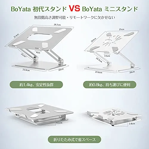 BoYata ノートパソコン スタンド ミニ スタンド PCスタンド パソコンスタンド タブレットスタンド 無段階高さ調整 人間工学 姿勢改善 猫背解消 滑り止め付き 放熱対策 折りたたみ式 軽量 在宅勤務・リモートワーク Macbook/Macbook Ai