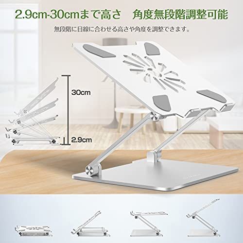 【姿勢改善&無段階高さ・角度調整可能】BoYata ノートパソコンスタンドは人間工学に基づいて設計されて、PC作業時、 視線が高くなり姿勢が正されることで、肩や腰や首など負担を軽減してくれて、猫背なども有効に防止できます。最小高度2.9cm最大高度30cmまで自分に最適な高度に調整可能、机と椅子の不便な高さから解放され、デスクワークがもっと快適になります。