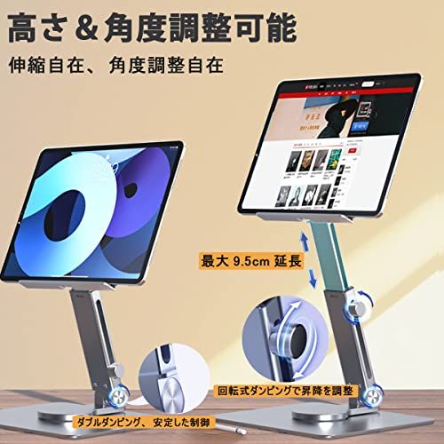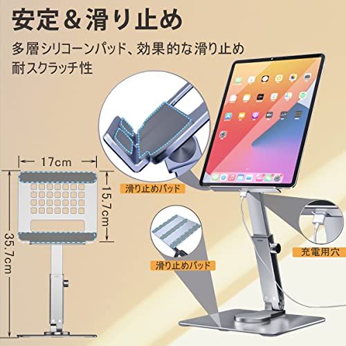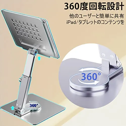 折りたたみ式 iPad タブレット スタンド 360度回転 格納式 高さと角度調節可能 持ち運びやすい 人間工学設計 アルミ合金放熱卓上スタンド 姿勢改善 予約充電ポート 滑り止め 4.7-12インチiPad / Kindleに対応/Surface/Switc