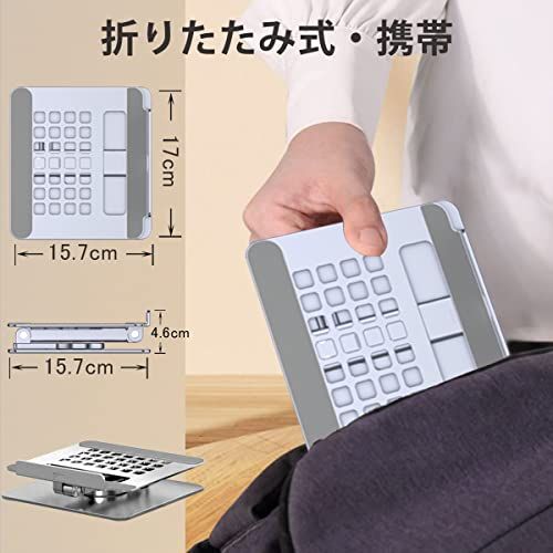 【折りたたみ式・携帯・放熱対応】この省スペースなタブレットスタンドは、コンパクトサイズ(わずか17*15.7*5.1cm)に折り畳むことができます。収納に便利で、バックパック、荷物やバッグに詰め込むことができます。アルミ削り出しボディは耐久性と放熱性に優れ、さらに多くの放熱穴があり、タブレットやipadの放熱をより良くします。