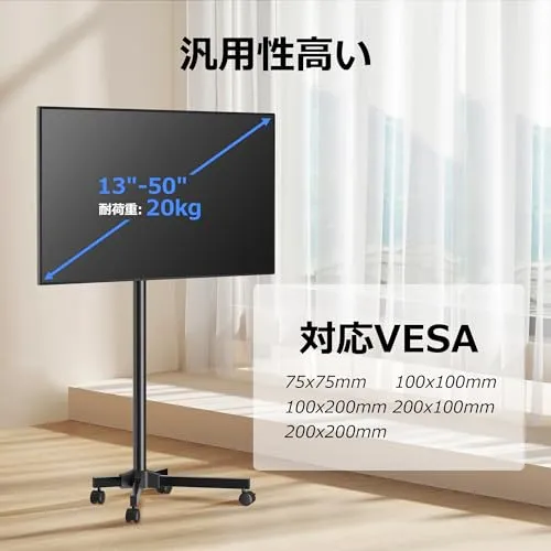 【取り付け可能なテレビ】対応インチ:1349インチ以内。対応重量:20kg以内。対応VESA(テレビ背面のネジ穴間の距離):75MMx75MMから200MMx200MMまで。※ご注意:ご購入前、テレビの重量、サイズ及びVESA規格をご確認ください。ご注意:100*100 VESA 規格のパネルは M4 ネジにのみ対応します。購入前に必ずご確認ください。
