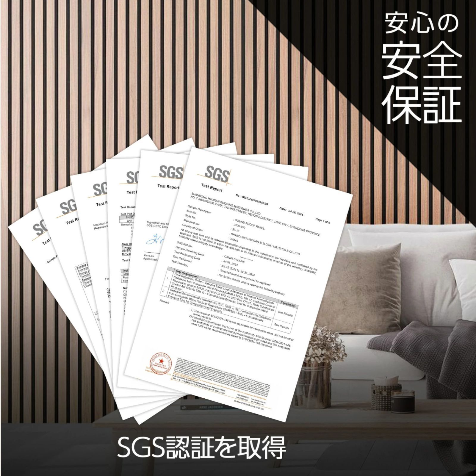 【安全な素材】 SGS認証を取得、環境に優しい素材で安全・安心な素材を採用し、快適な空間を提供します。