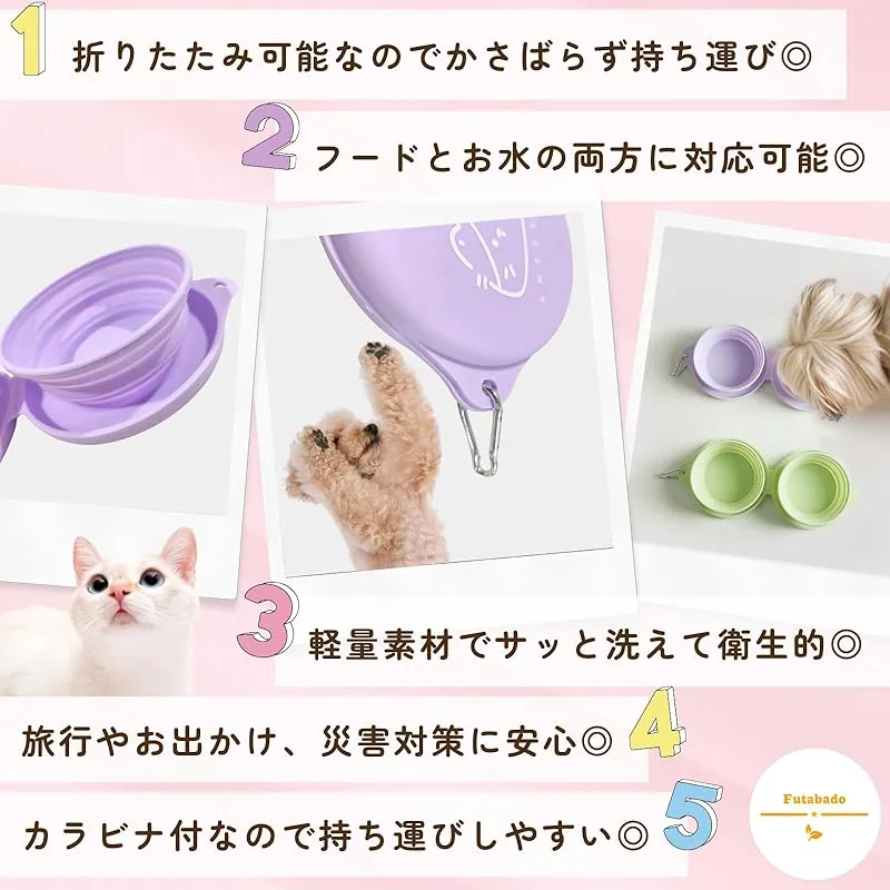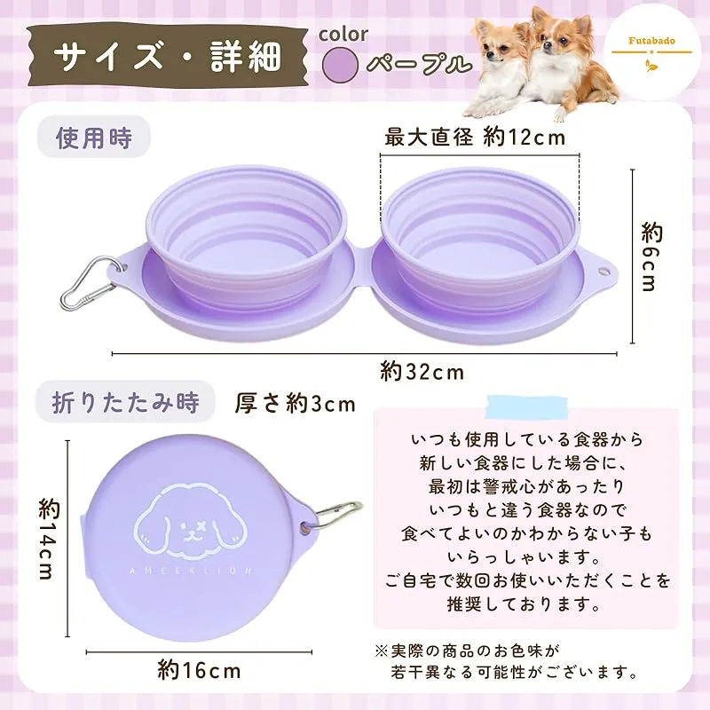 【新品】 犬 フードボウル 折りたたみ 猫 食器 ペットボウル えさ入れ 犬 皿 餌入れ えさ皿 餌皿 おでかけ 散歩 旅行 (パープル) 製造元:Futabado 色:Aタイプ パープル 商品タイプ:トランジショナル