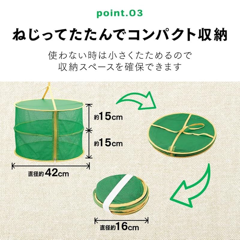 【新品】 アイメディア(Aimedia) コンパクトにたためる乾物ネット 干物用ネット ネット干し網 干し網 折りたたみ式 2段 42cm 干物網 干しかご 乾燥ネット ドライネット 干し野菜 ドライフルーツ 食器 干網 万能 アウトドア キャンプ 製造元:アイメディア(Aimedia) 商品番号:1009735 商品内容:直径42cm 色:グリーン 商品タイプ:2段