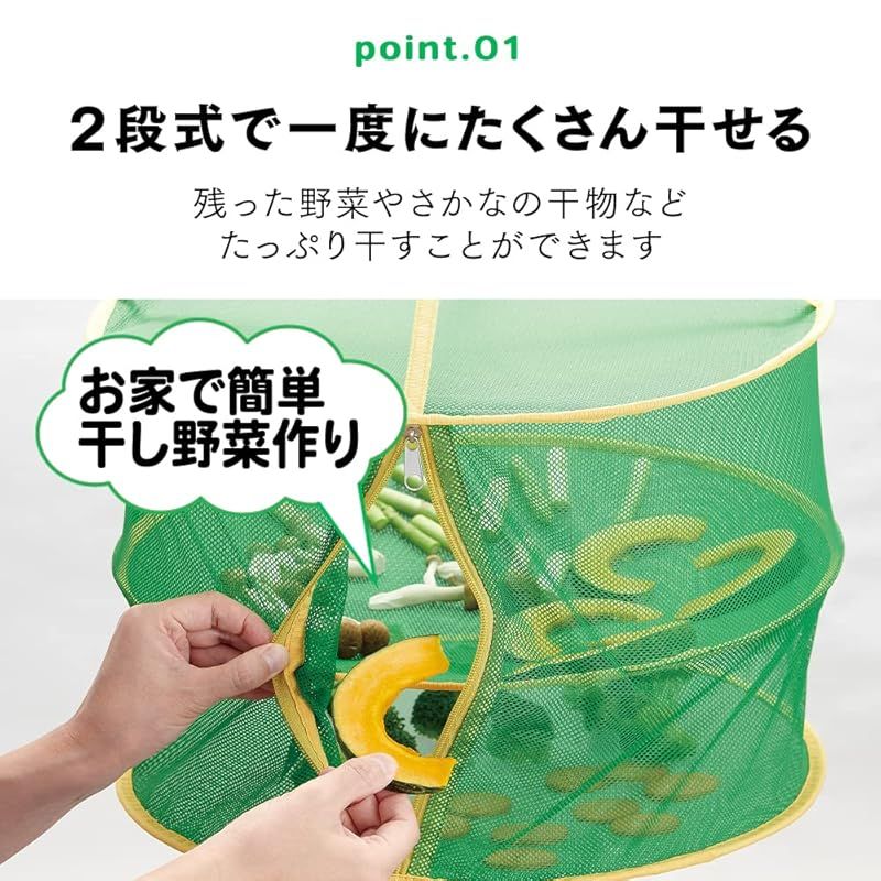 【2段式で一度にたくさん干せる】お家で簡単干し野菜作り!残った野菜やさかなの干物などたっぷり干すことができます。